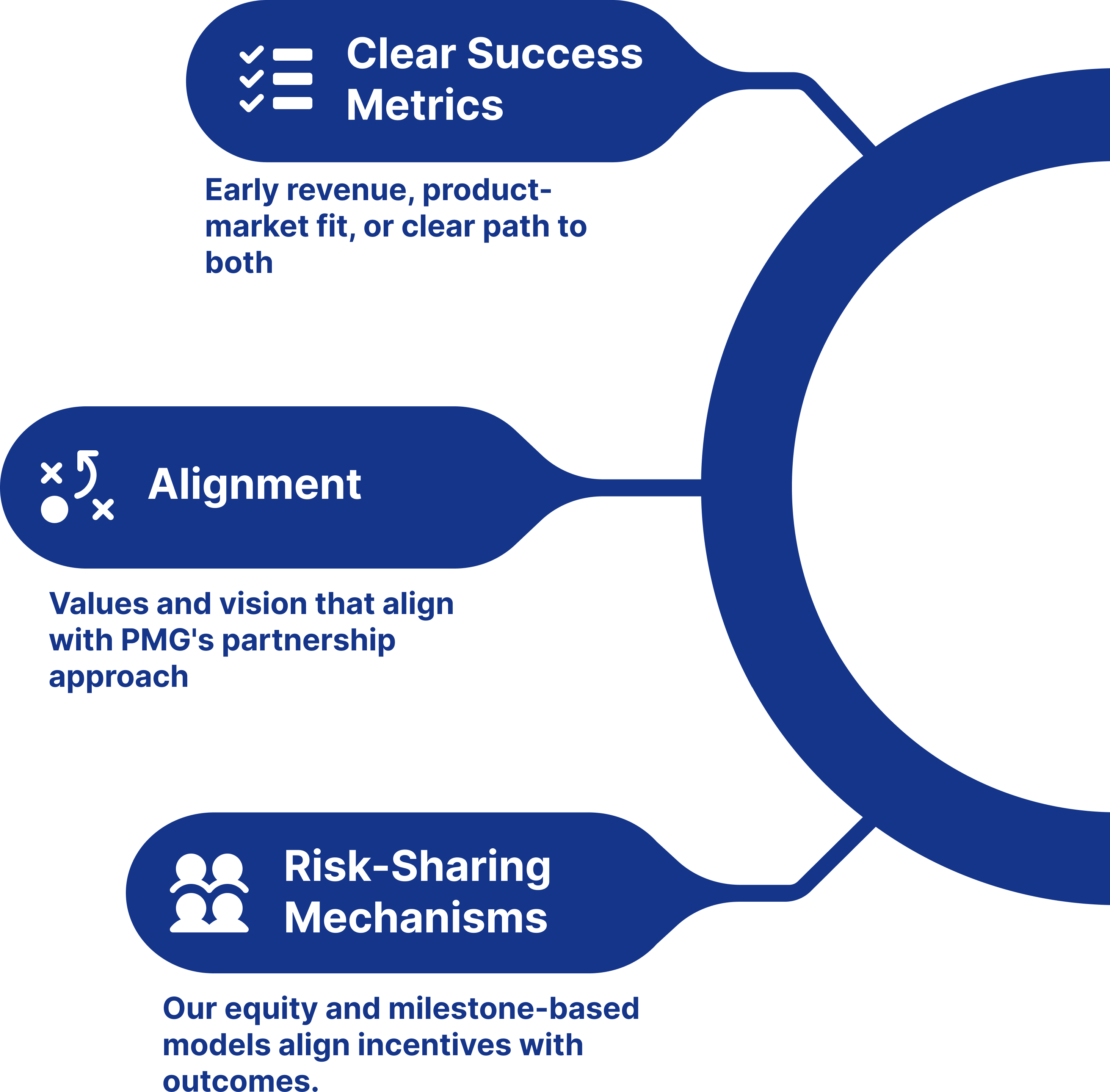 We clearly define the scope of support PMG will provide and negotiate the equity agreement, aligning our investment of expertise with the potential value we help create.